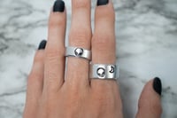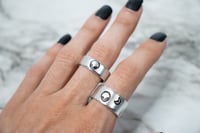 These are made from 14 gauge aluminum which is waterproof and will not tarnish or turn your fingers green.